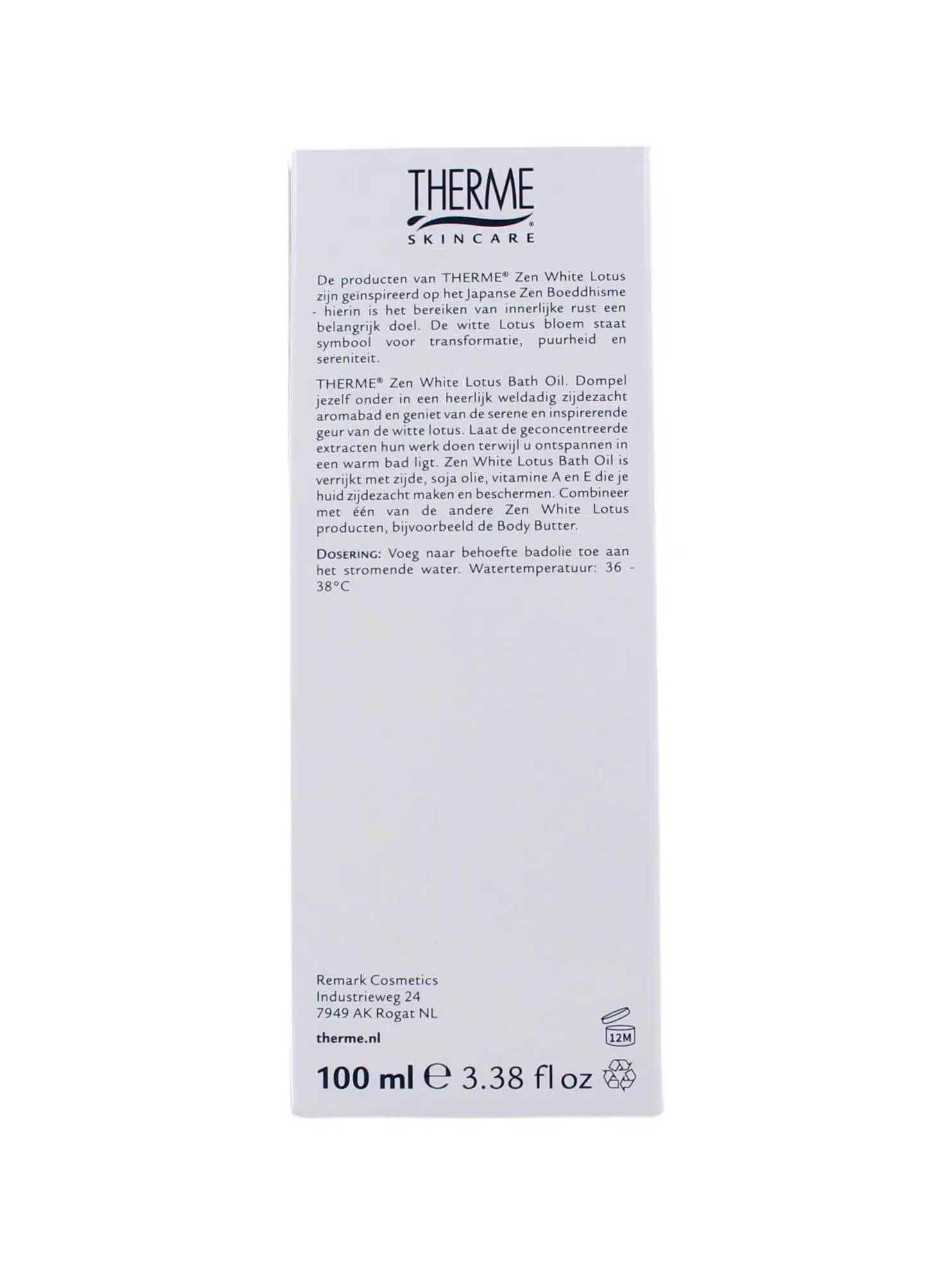 Op zoek naar Zen White Lotus badolie? Ontdek de serene beleving van Therme Badolie Zen White Lotus, een elixer voor een zijdezacht huidgevoel. Geniet van de kalmerende geur en luxe hydratatie. Ervaar pure ontspanning in jouw wellnessritueel.