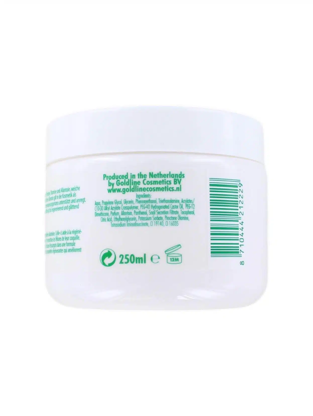 Ontdek de geavanceerde formule van Goldline Slakkenkracht, jouw nieuwe bondgenoot in slakkencreme huidverzorging. Deze unieke 250 ml bodycrème is speciaal ontwikkeld om de huid te voorzien van essentiële voedingsstoffen en herstellende eigenschappen die je bij dagelijks gebruik kunt ervaren. Met deze crème profiteer je van de rijke samenstelling die is verrijkt met natuurlijke slakkenextracten, bekend om hun vermogen om de huid te verjongen en te herstellen.