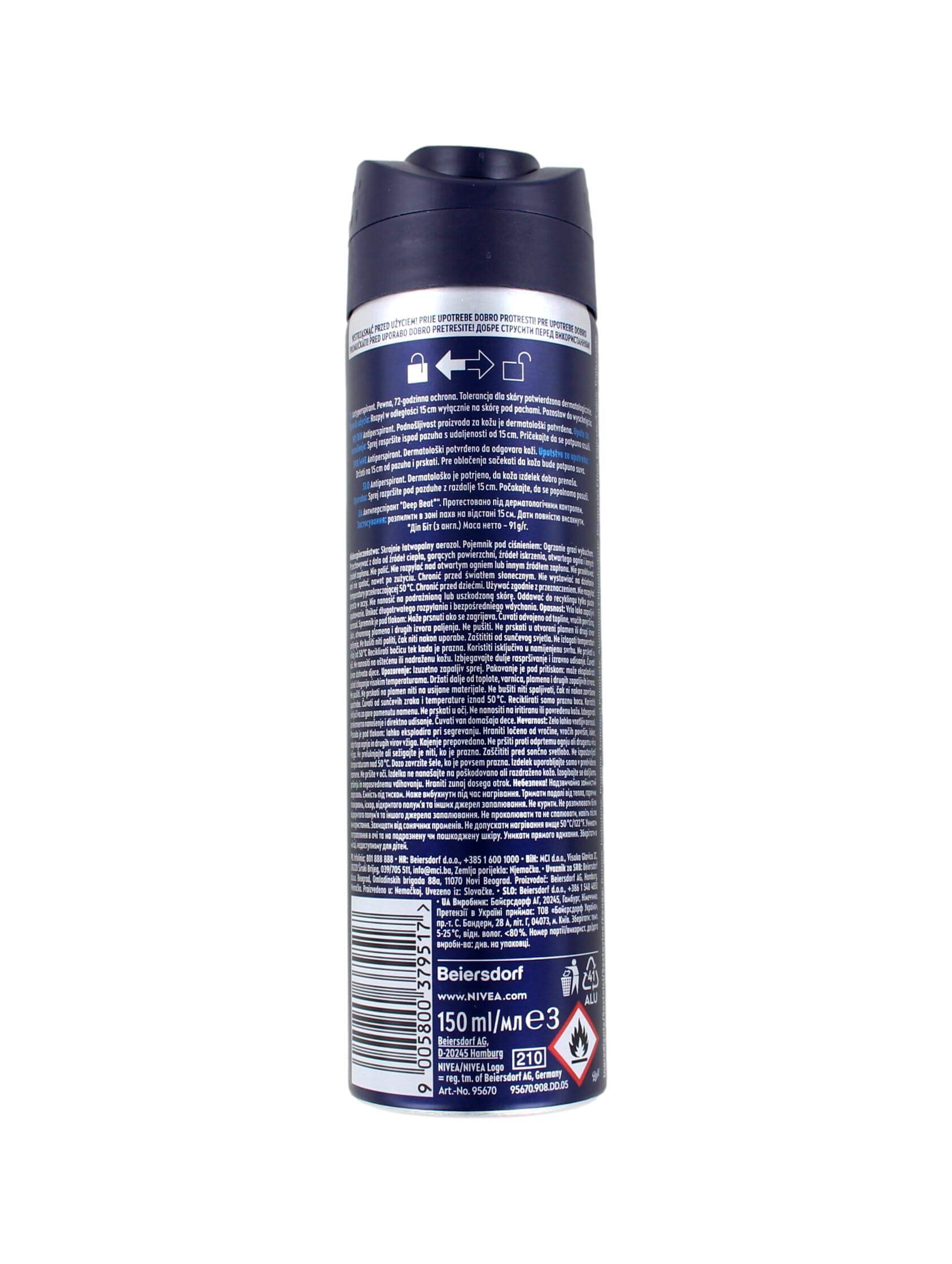 Ervaar langdurige frisheid met Nivea Men Deodorant Spray Deep Beat, 150 ml, die slechte geurtjes bestrijdt. Biedt 48 uur betrouwbare antitranspirantbescherming. Huidvriendelijkheid dermatologisch goedgekeurd.