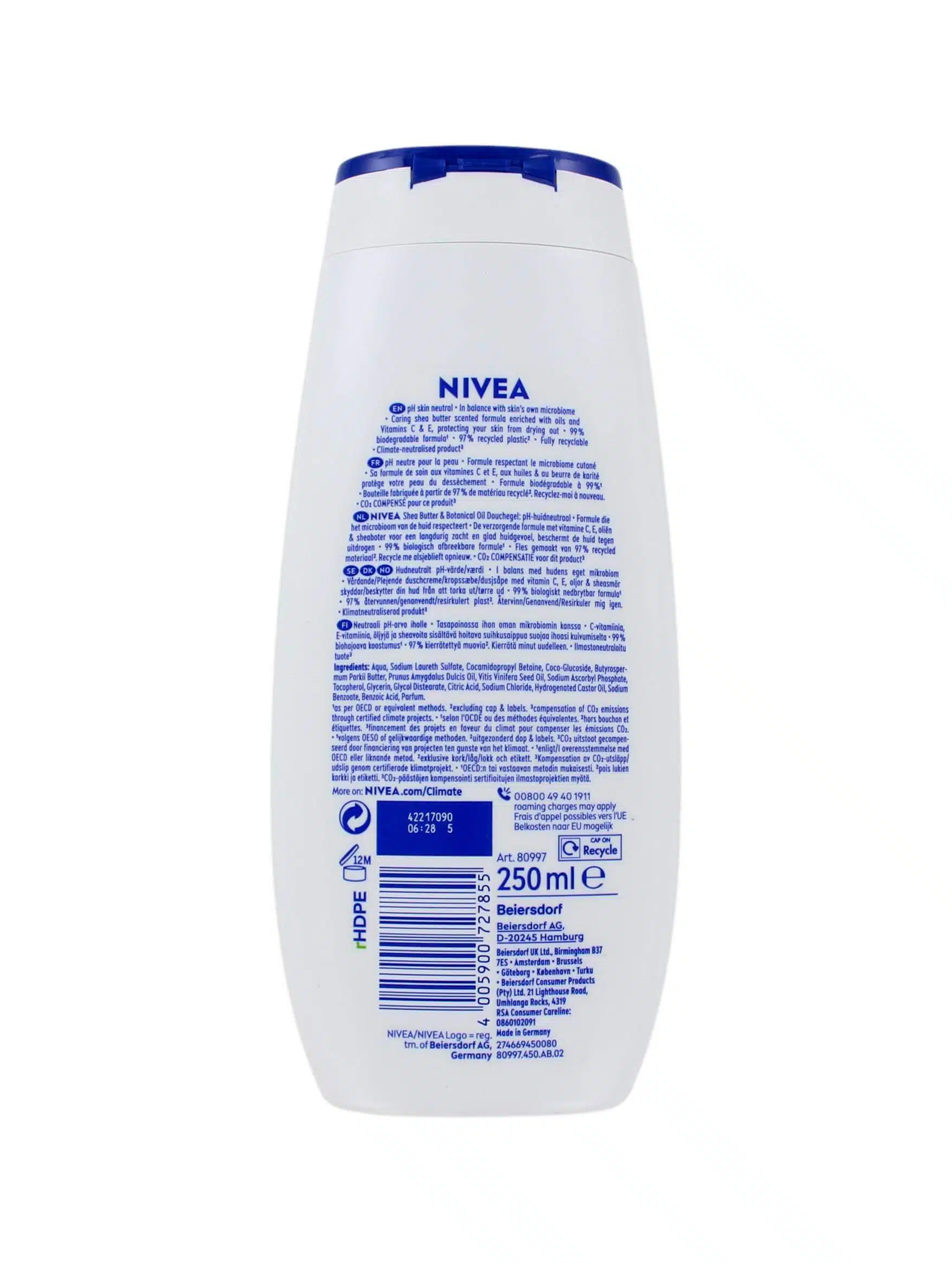 Ontdek de luxe van Nivea Douchegel Shea Butter & Botanical Oil, met een inhoud van 250 ml om je dagelijkse douche om te toveren in een verwenmoment voor je huid. Deze uitzonderlijke Nivea Shea Douchegel combineert de rijke voedende eigenschappen van sheaboter met de verzachtende kracht van botanische oliën, speciaal ontworpen om jouw huid diep te hydrateren en comfort te bieden. De zorgvuldige samenstelling zorgt ervoor dat je huid na elke wasbeurt zacht aanvoelt en beschermd is tegen uitdroging. Met de subtiele, delicate geur van Nivea Shea Douchegel verlaat je de douche met een gevoel van frisheid dat urenlang aanhoudt. Bovendien is de formule zacht genoeg voor dagelijks gebruik en helpt het de natuurlijke balans van je huid te behouden, waardoor het geschikt is voor alle huidtypes. Ervaar zelf de transformatie van je huid naar een zachtere, meer gehydrateerde staat terwijl je geniet van het gemak en de efficiency die je van Nivea verwacht._stats_plugins_api_cache::1:_multiwidget