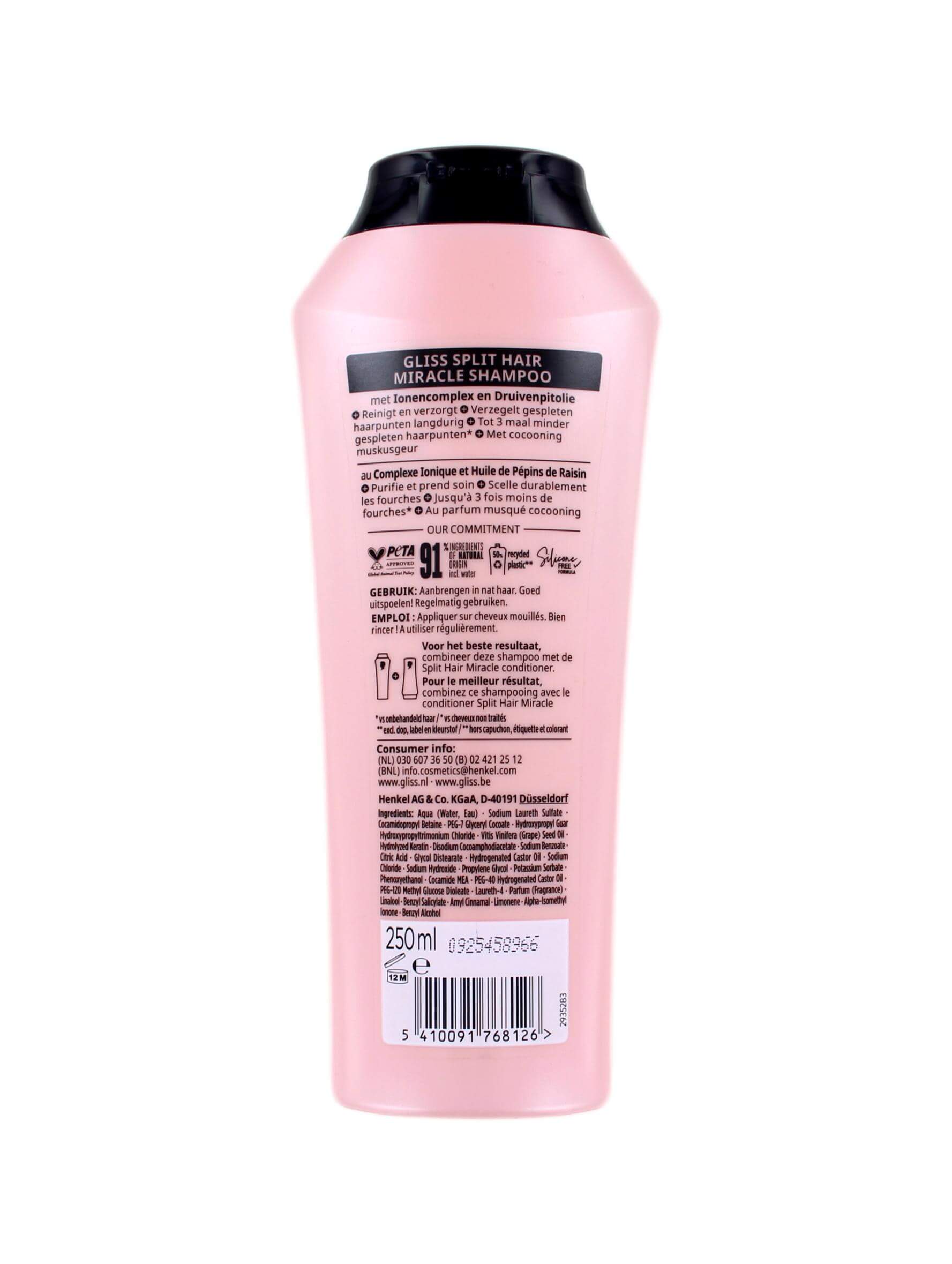 Gliss Kur Shampoo Split Hair Miracle is het antwoord voor iedereen die verlangt naar glanzend, soepel haar, vrij van gespleten punten. Reinig en versterk jouw lokken met deze effectieve split ends shampoo en zie hoe je haar transformeert na elke wasbeurt. Met deze fles van 250 ml heb je genoeg shampoo om je haar langdurig te verzorgen en te genieten van zichtbaar gezond haar.